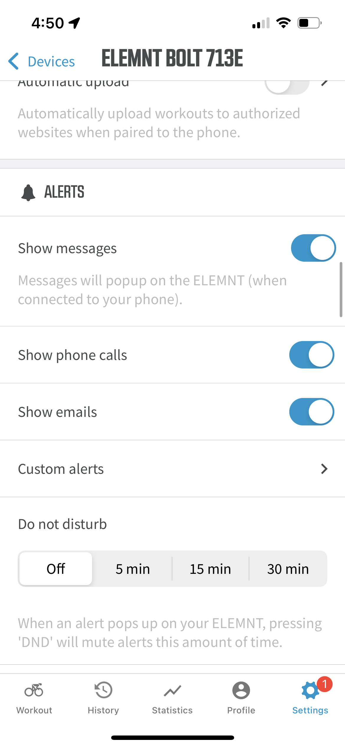 ELEMNT companion app already had a section under Settings for Alerts. This previously only including text messages, emails, and phone calls.