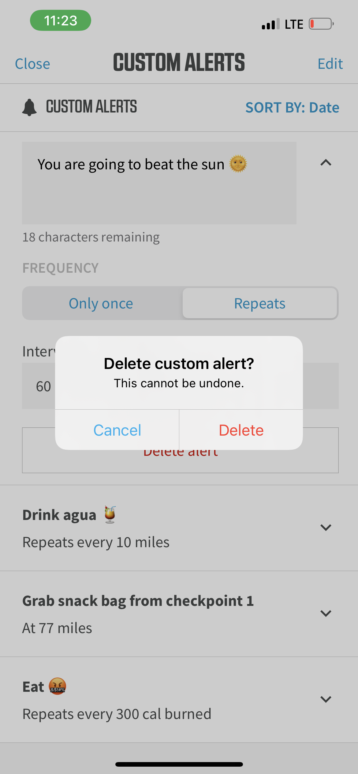 I remember early on showing the dev team an EARLY iteration of custom alerts on iOS/Android. The first thing they saw was a line that said “Eat two cherry 🍒 gels”