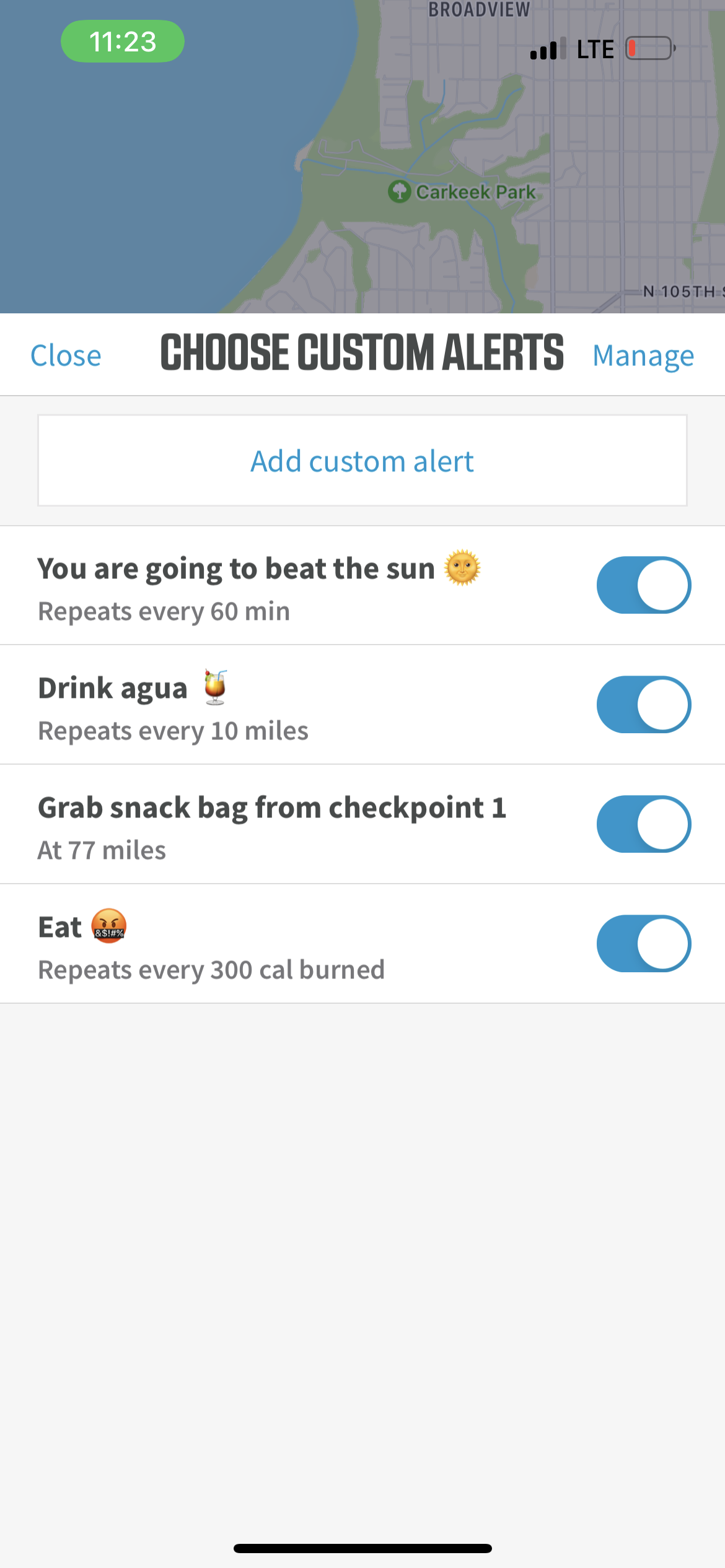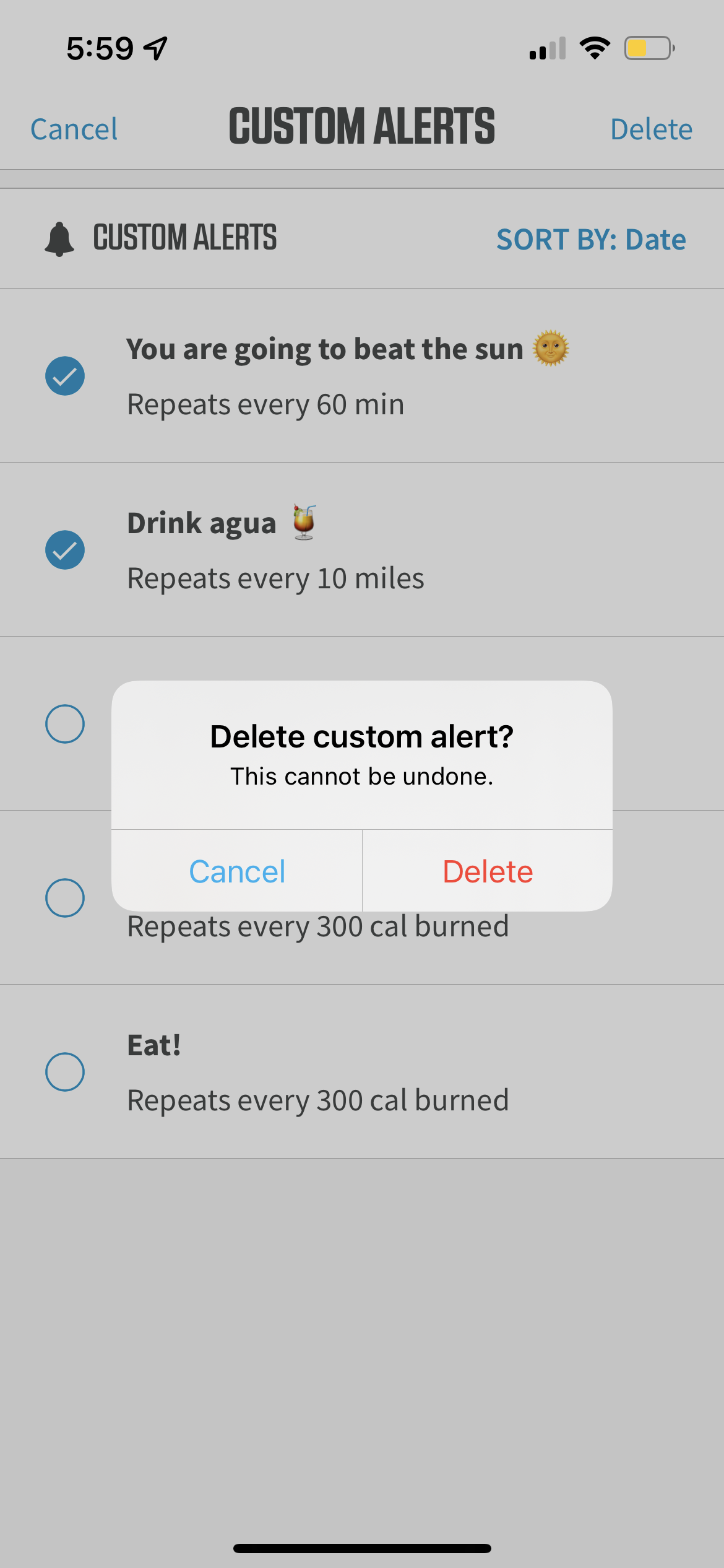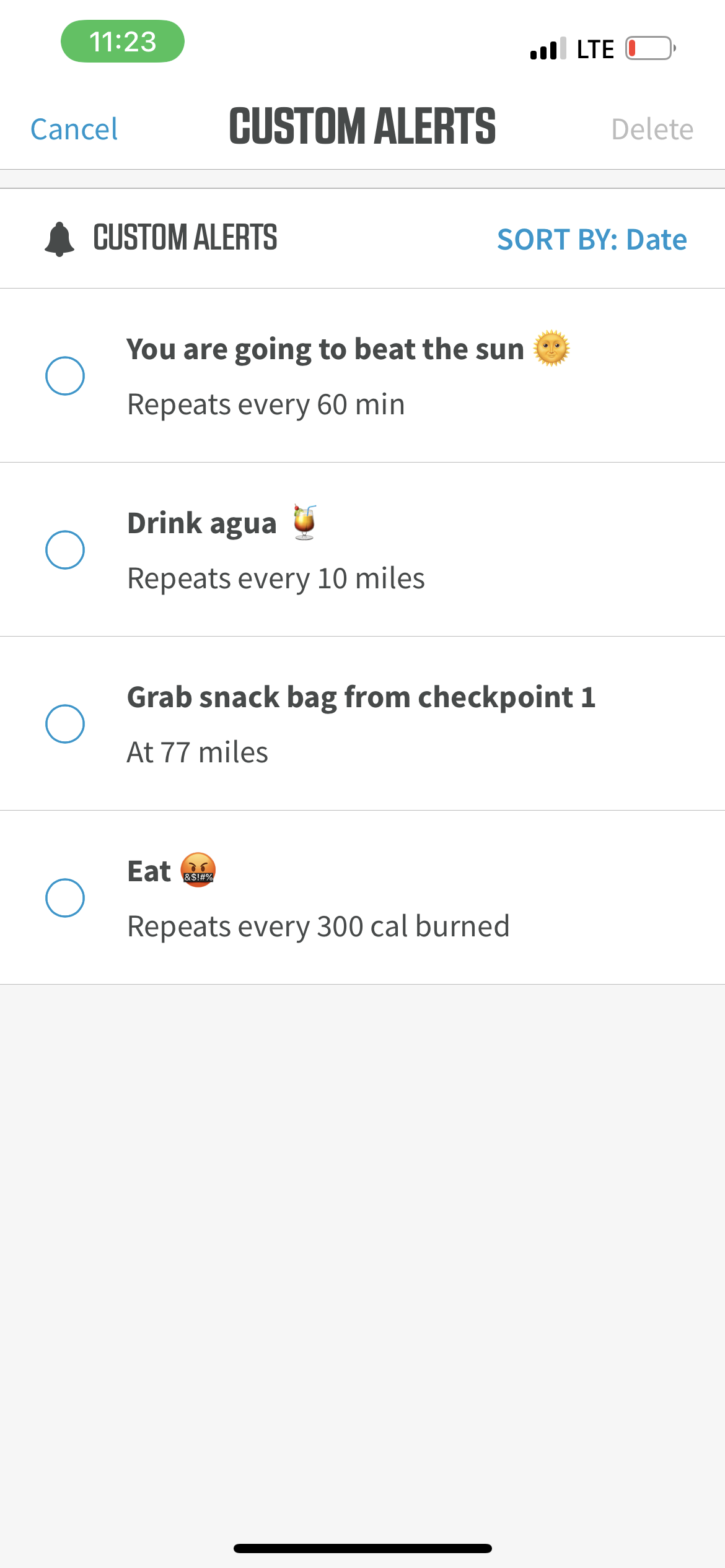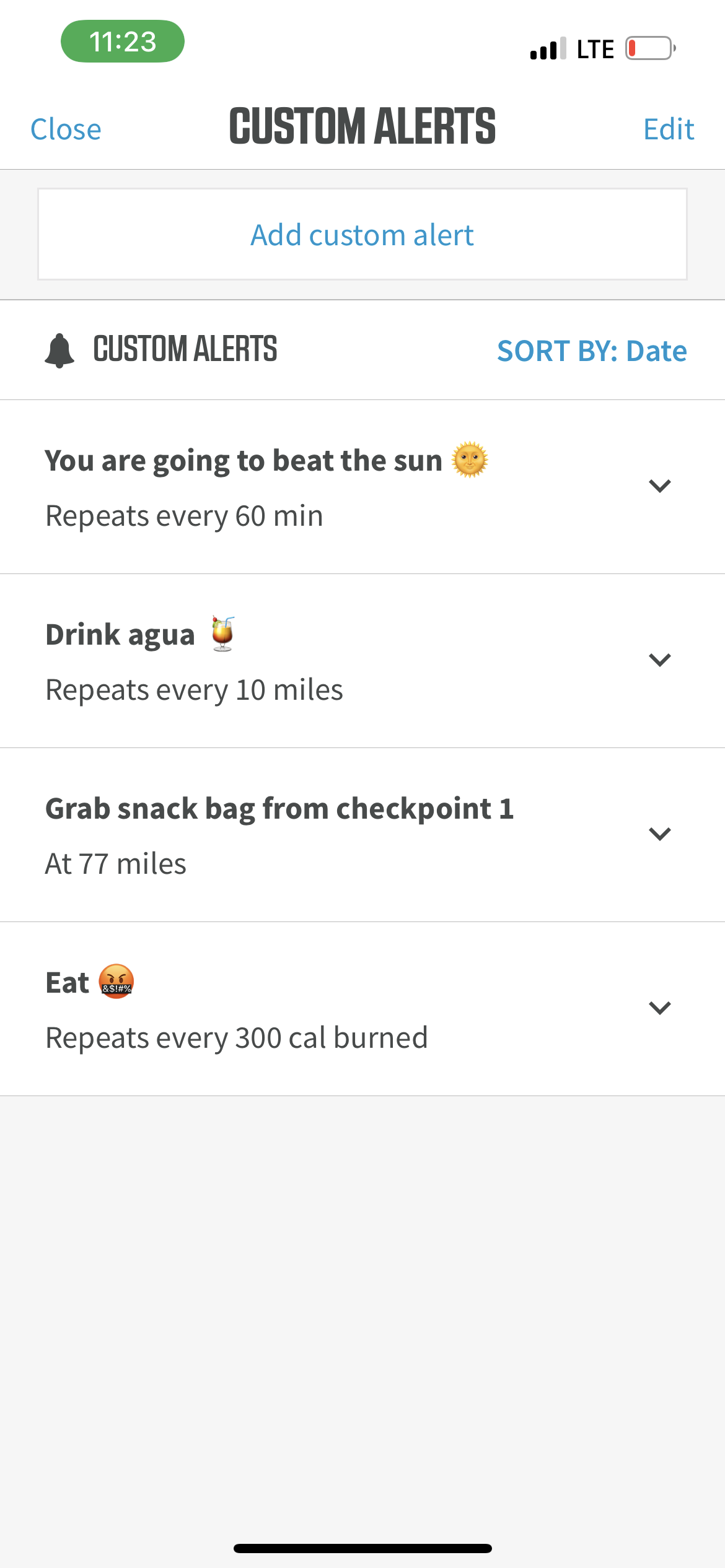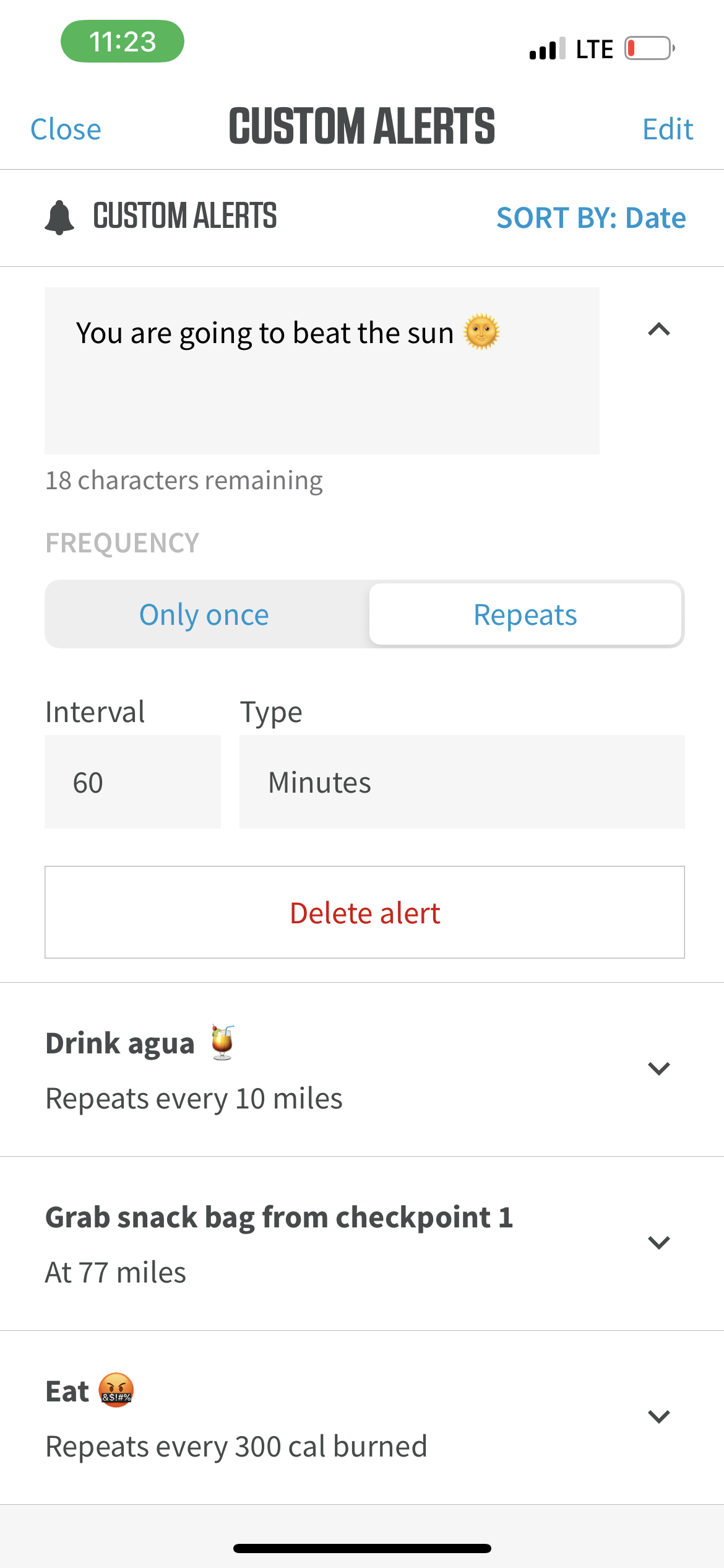 The most common use case for custom alerts is a rapid on/off of pre-made alerts that a user needs for that specific workout or race.