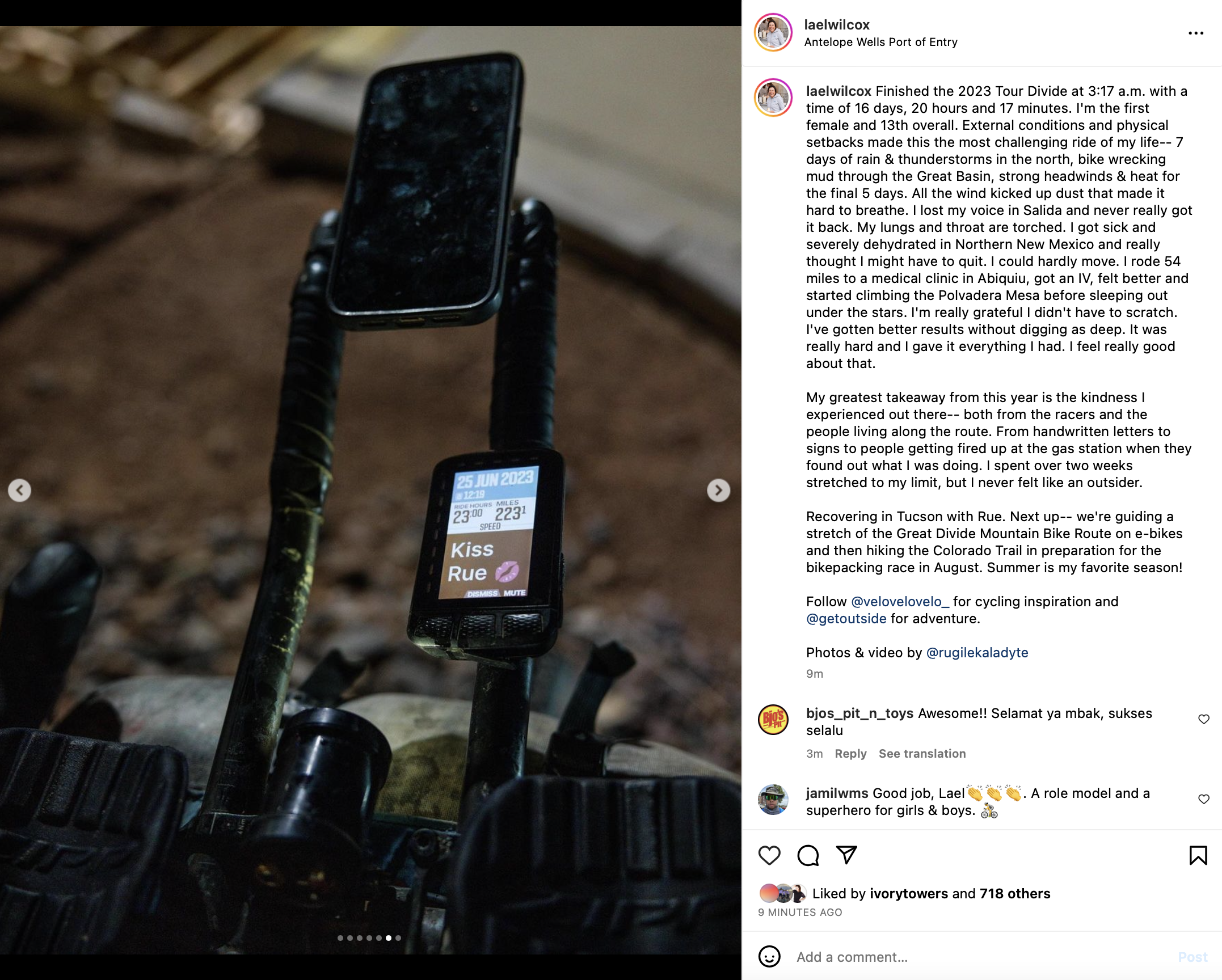 My favorite custom alerts IRL - ultra endurance bike racer Lael Wilcox has a custom alert to kiss her wife, Rue.