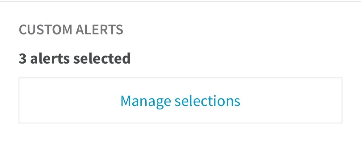 Editing in the “Manage” page allows for an accordion expand-and-collapse for each custom alert that allows each field to be edited in-line!