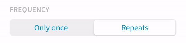 After iterations (dropdown, changing the modal contents entirely for each of these options picked), selecting between a single or repeated fire alert was done best on a simple 2-up picker that didn’t alter the rest of the modal