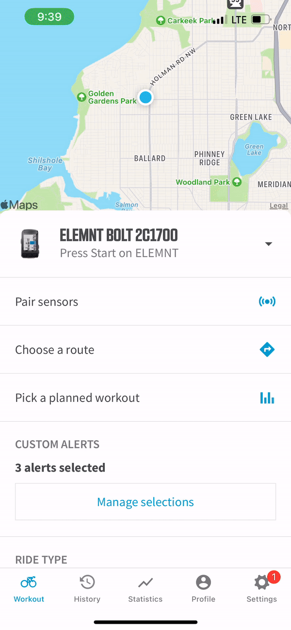 Workout-specific capabilities on ELEMNT (that users configure on the companion app):