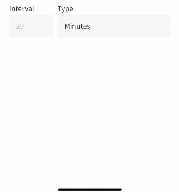 Interval is limited to integers 0 — ∞ and brings up a number keyboard only. Decimals are allowed.