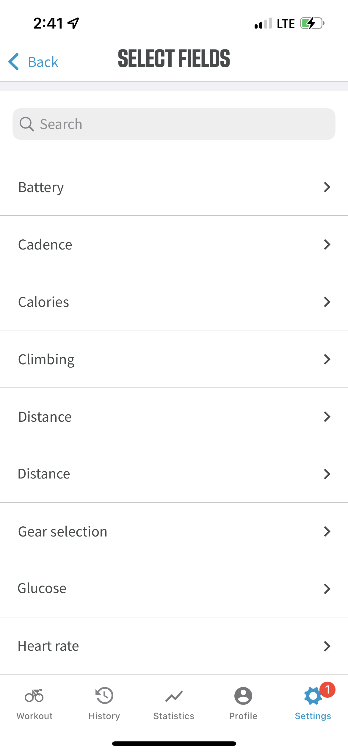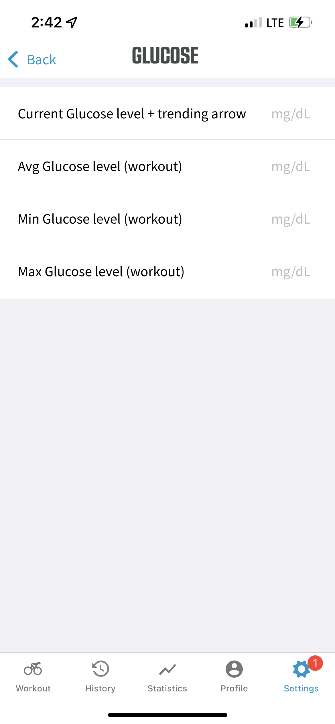 Via bike computer, sensor pairing can automatically add base GLUCOSE field (current Glucose level) to workout page.
