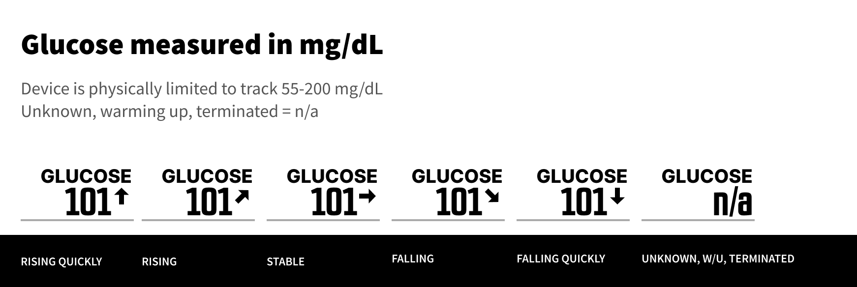 Abott Libre Biosensor is able to capture and report integers between 55-200 (mg/dL).